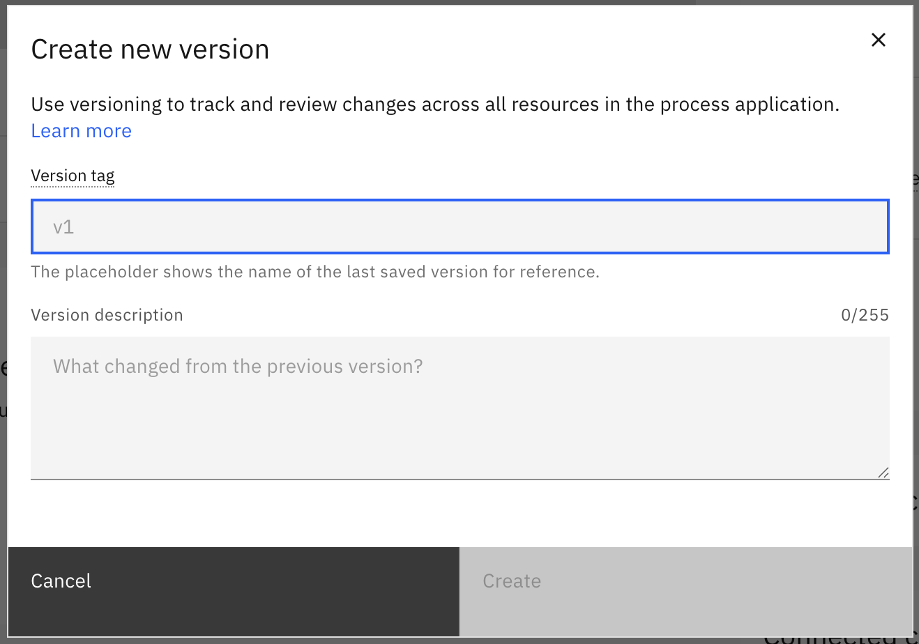 - Enter a Version tag in the version creation modal.